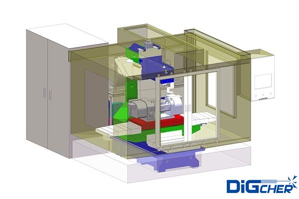 機(jī)床部分:使用BT40通用刀柄作為高壓水噴頭載體,配以自動(dòng)刀庫(kù)換刀系統(tǒng)。高精度電腦數(shù)控分度盤提高加工精度和加工效率。